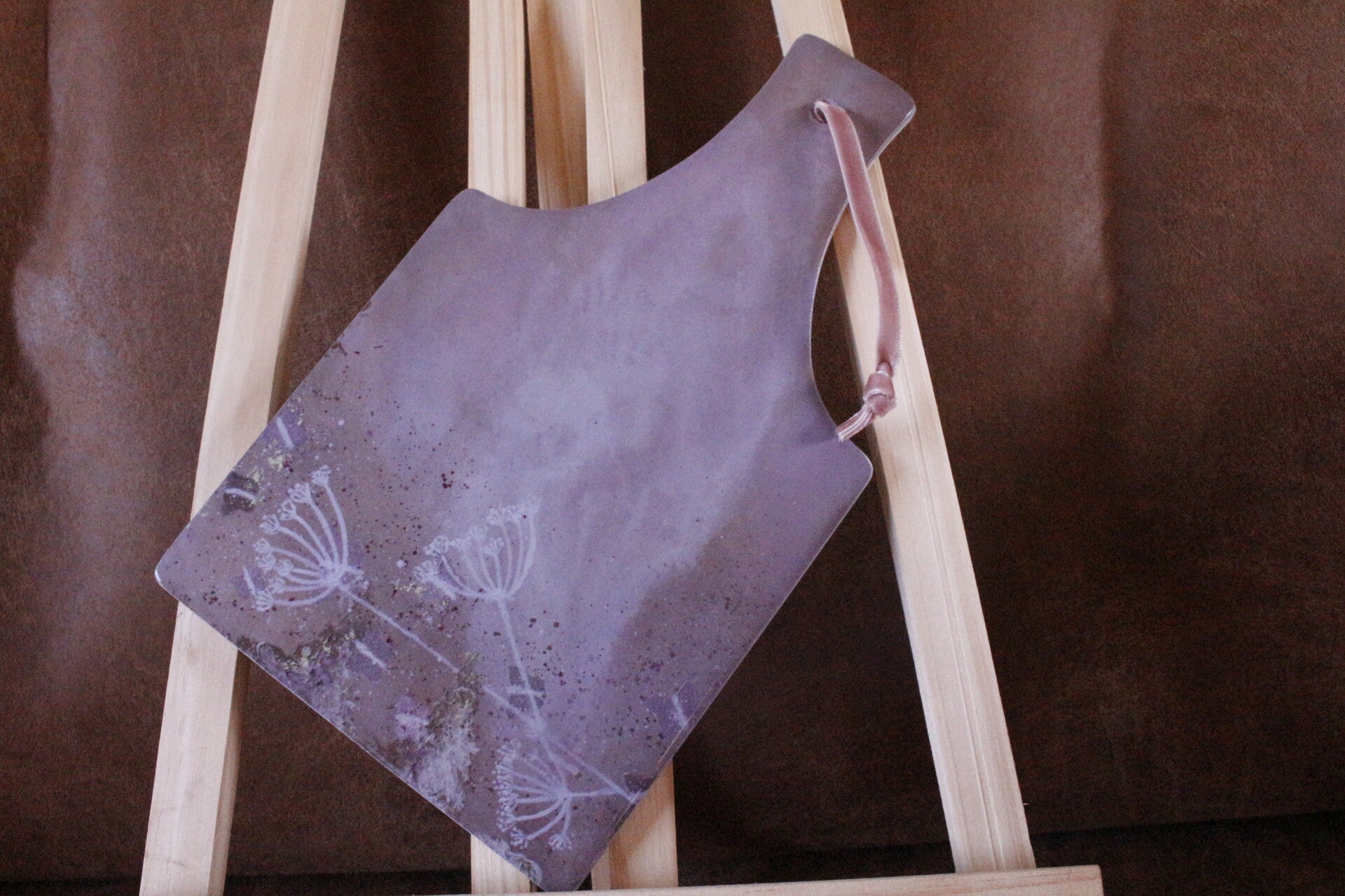 Twee kleine schilderijtjes in paarse en lila tinten, elk met bloemenmotief. Beide zijn handgeschilderd origineel op canvas en worden geleverd met een mini-ezeltje, zodat ze direct neergezet kunnen worden. Leuk als cadeautje of om een klein hoekje op te fleuren.